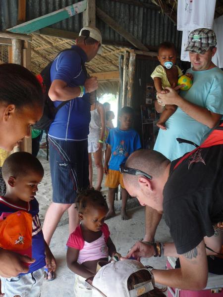 Aprovechando las excursiones que íbamos a hacer a Isla Saona y a Isla Catalina, nos coordinamos con Pepe el lanchero y con Jenny para poder entregar en mano las donaciones que llevamos desde España.