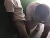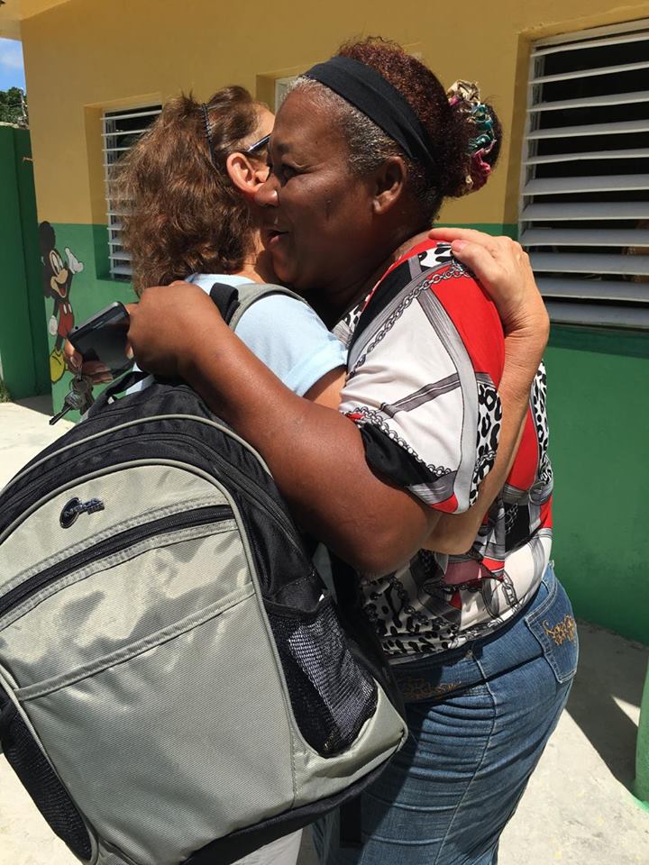 Celia Teresa y su marido han llevado a los niños de una escuelita estuches con lapices, gomas, afilas, etc. caramelos y algun calzado para los niños
